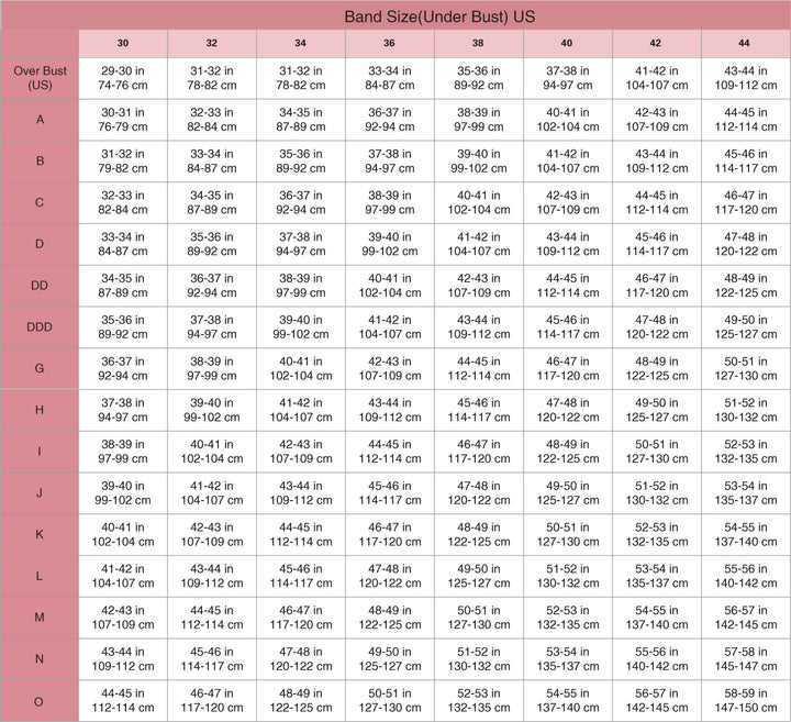 Notre soutien-gorge est conforme à la taille, vous pouvez donc choisir votre taille de soutien-gorge habituelle. Si vous n'êtes pas sûre de votre taille de soutien-gorge, veuillez contacter notre service client pour obtenir de l'aide. Je vous recommande vivement d'utiliser le calculateur ci-dessous pour obtenir la bonne taille de soutien-gorge :